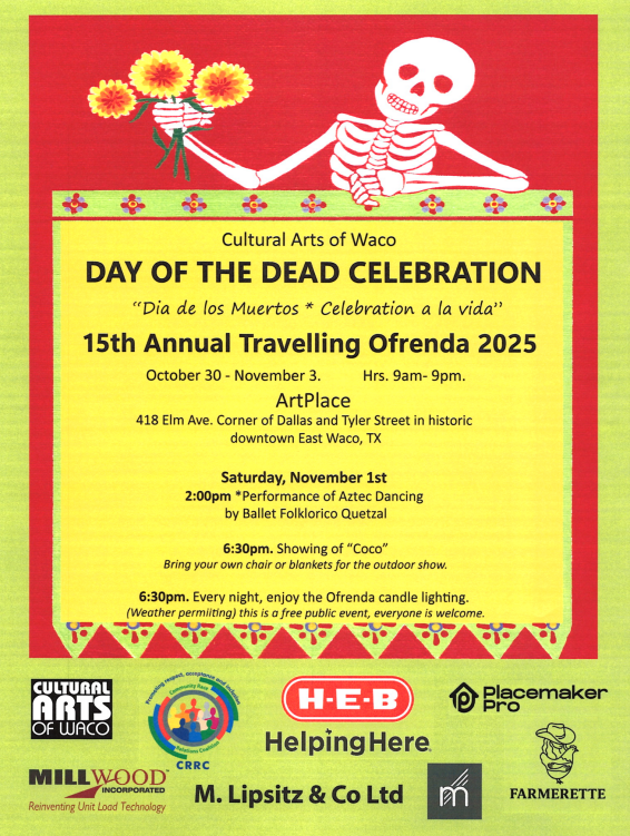 Ofrenda 15th Annual Traveling Ofrenda Day of the Dead celebration! This is a FREE public event! Our awesome volunteers making Marigolds! For sponsor information text 254-723-6830